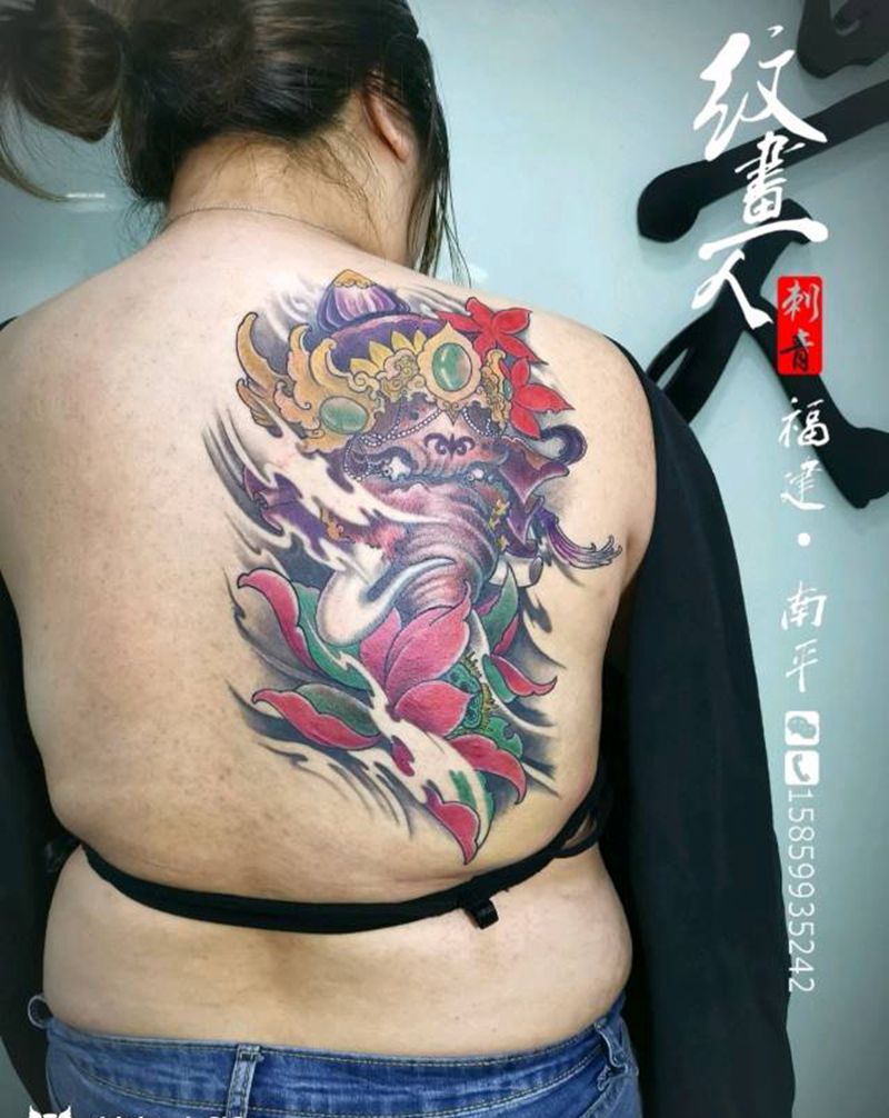 当前位置: 首页 >福建省南平市纹身店-南平纹画人刺青纹身图案>象神纹身图片_背部新传统纹身图案