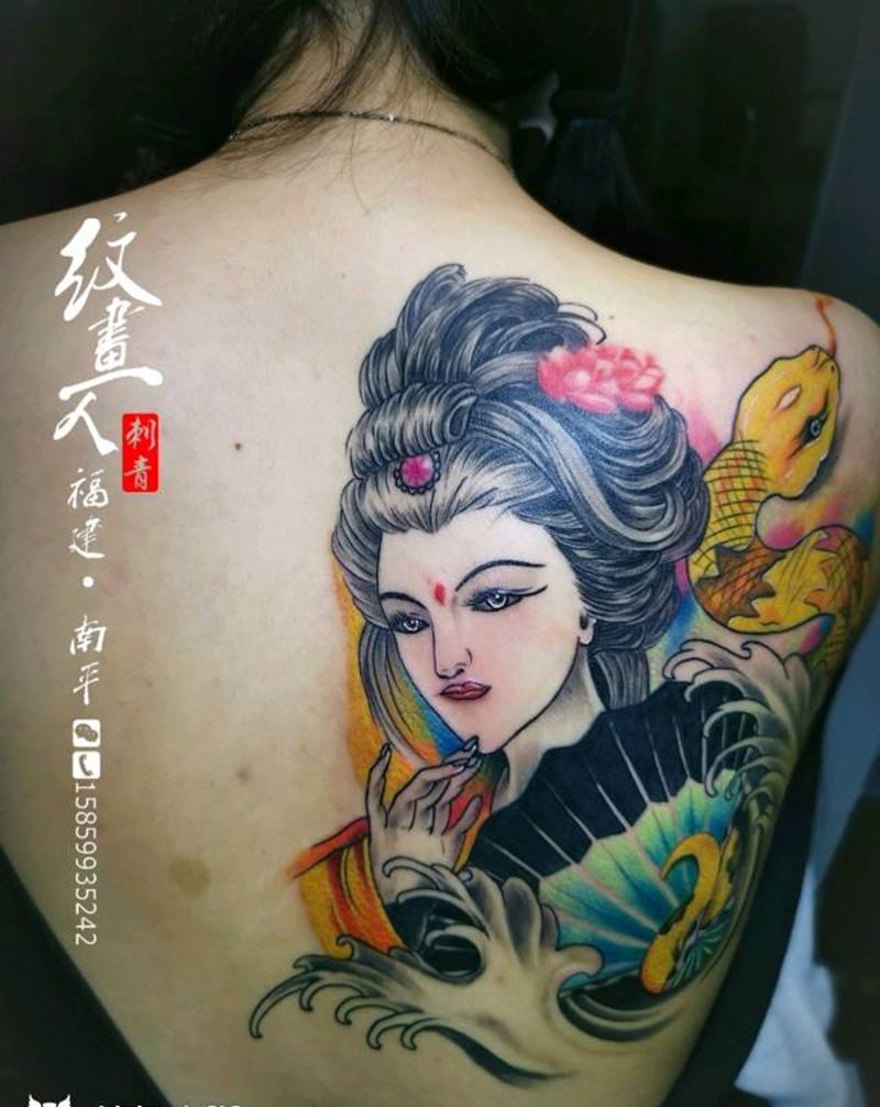 当前位置: 首页 >福建省南平市纹身店-南平纹画人刺青纹身图案>艺伎纹身图片_背部新传统纹身图案
