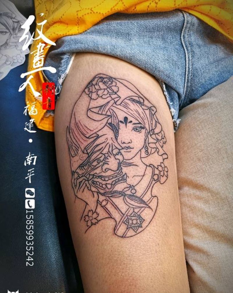 当前位置: 首页 >福建省南平市纹身店-南平纹画人刺青纹身图案>艺伎纹身图片_腿部新传统纹身图案
