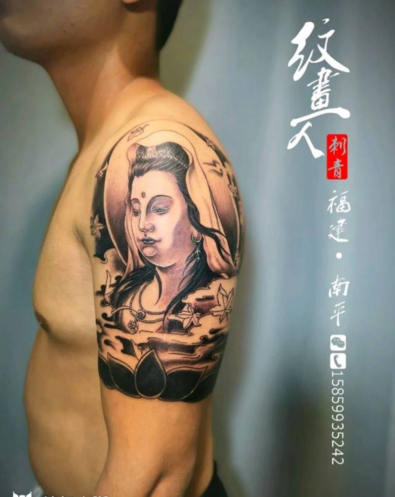 观音(遮盖)纹身图片_手臂新传统纹身图案