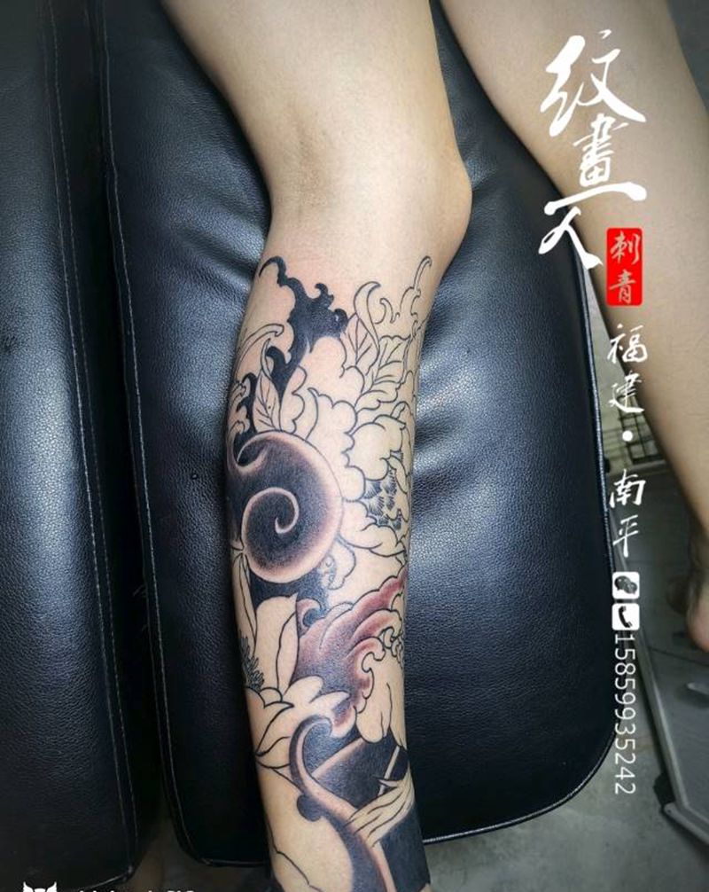 当前位置: 首页 >福建省南平市纹身店-南平纹画人刺青纹身图案>鲤鱼牡丹包小腿 未完成纹身图片_腿部新传统纹身图案