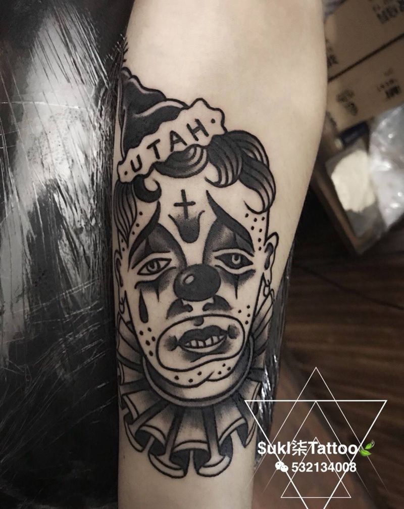 • T包小腿吹火男+阿多福纹身图片_腿部老传统新传统吹火男阿