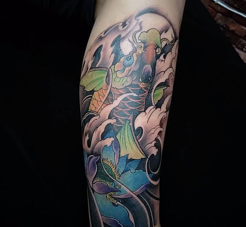 当前位置: 首页 >江西省南昌市纹身店-新时代刺青堂纹身图案>鲤鱼纹身图片_腿部纹身图案
