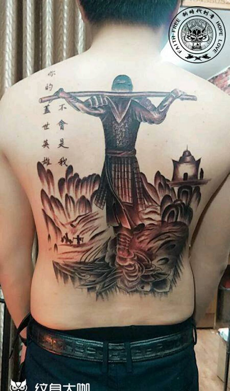 • 黑灰满背纹身图案