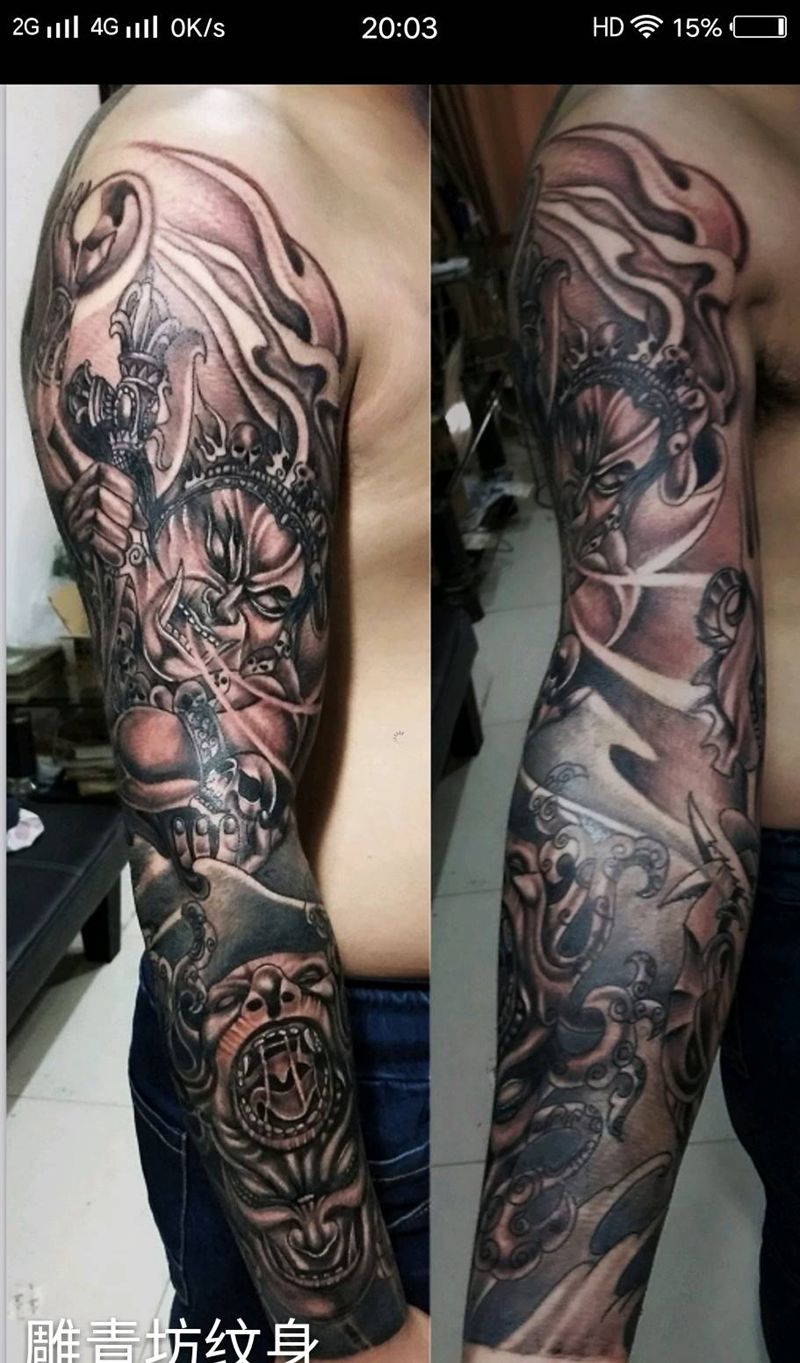 当前位置: 首页 >江西省景德镇市纹身店-雕青坊纹身纹身图案>护法 魔鬼花臂纹身图片