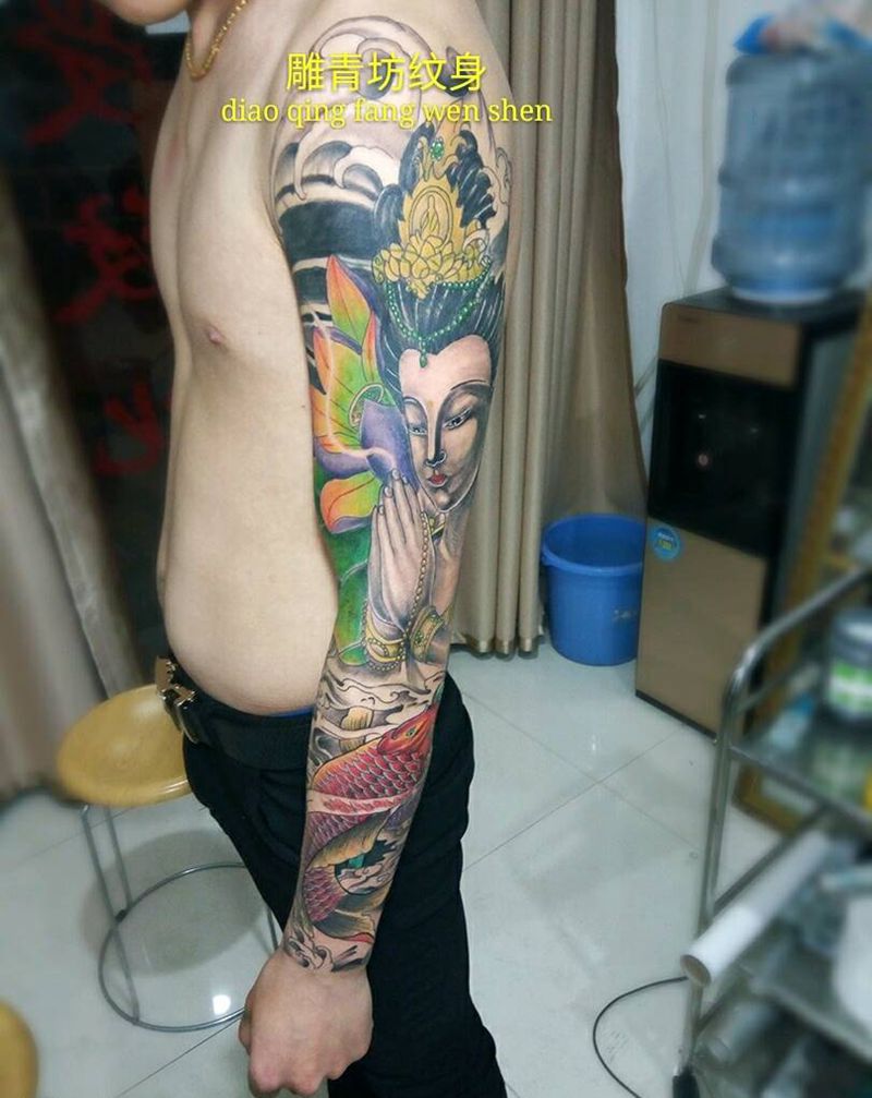 当前位置: 首页 >江西省景德镇市纹身店-雕青坊纹身纹身图案>观音 鱼花臂 大臂部分是遮纹身图片