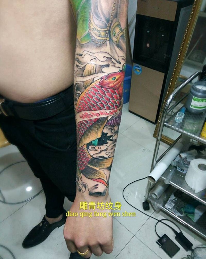 当前位置: 首页 >江西省景德镇市纹身店-雕青坊纹身纹身图案>观音 鱼花臂 大臂部分是遮纹身图片