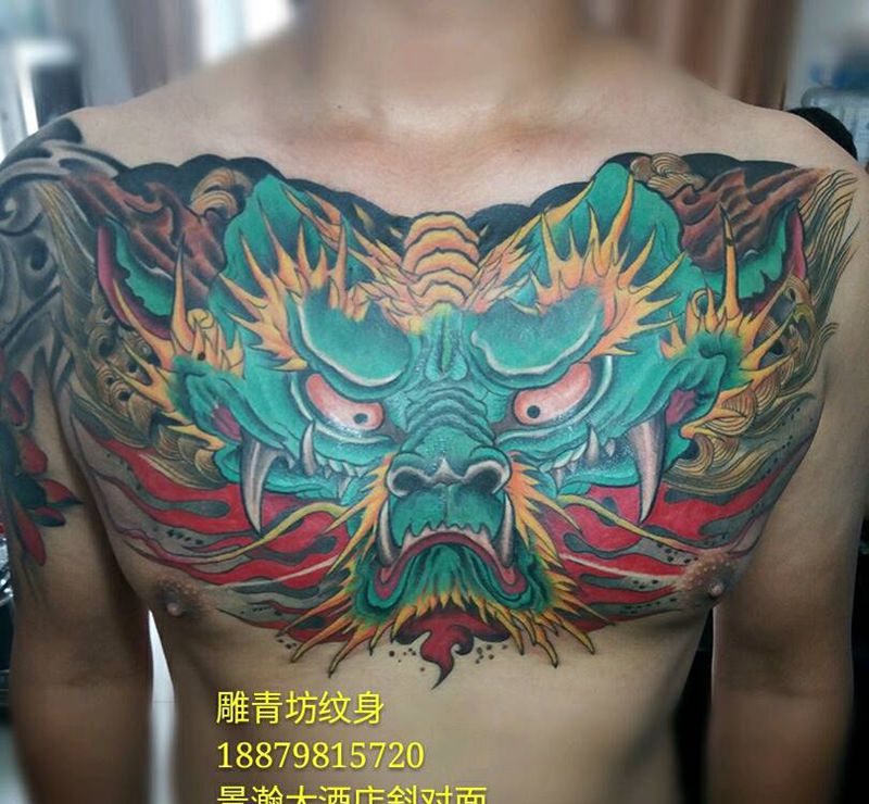 当前位置: 首页 >江西省景德镇市纹身店-雕青坊纹身纹身图案>花胸龙纹身图片