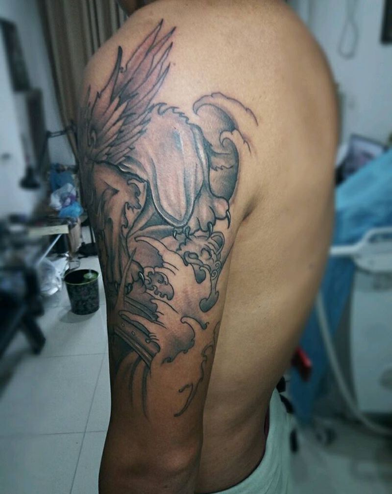 • 纹身吧推荐的披肩图腾半胛纹身图案作品展示
