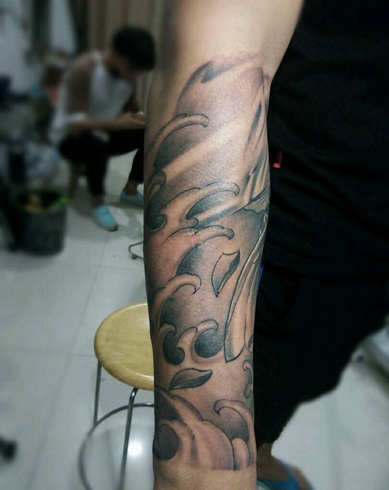 当前位置: 首页 >江西省景德镇市纹身店-雕青坊纹身纹身图案>包小臂鲤鱼遮盖字母纹身图片