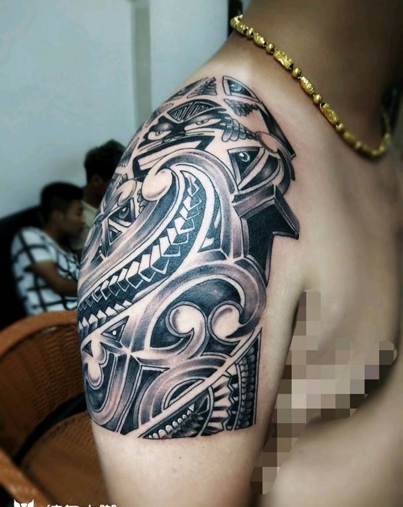 • 纹身吧推荐的披肩图腾半胛纹身图案作品展示