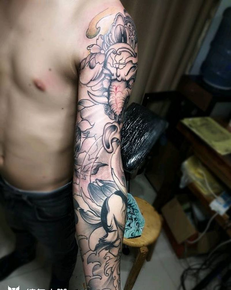 当前位置: 首页 >江西省景德镇市纹身店-雕青坊纹身纹身图案>象神花臂小臂是去年做的纹身图片