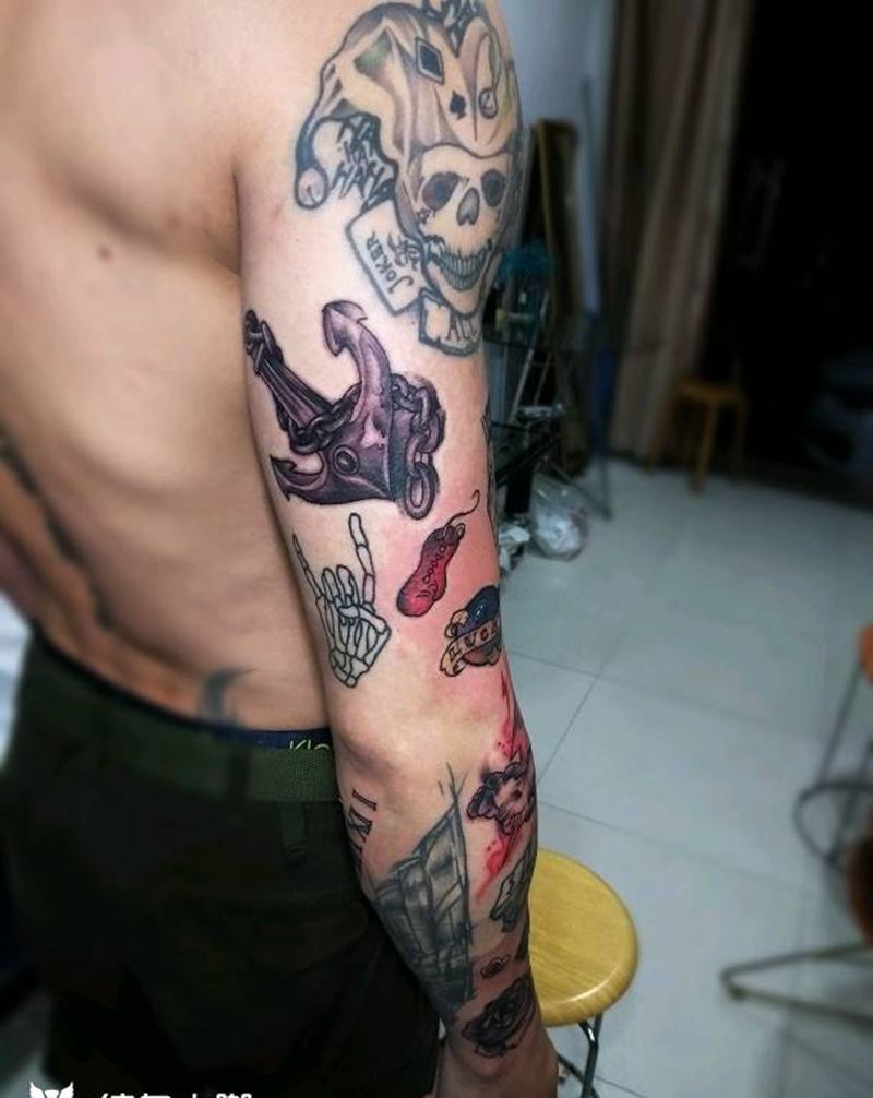 当前位置: 首页 >江西省景德镇市纹身店-雕青坊纹身纹身图案>拼接花臂纹身图片