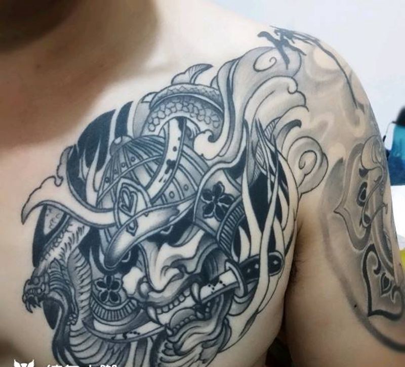 黑灰满背纹身图案