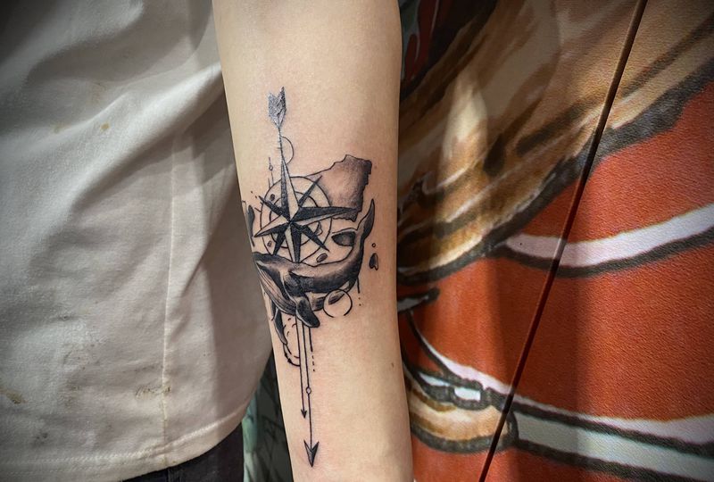 当前位置: 首页 >江西省景德镇市纹身店-仙浪刺青纹身图案>鲸鱼指南针写实纹身图片_手臂新传统纹身图案