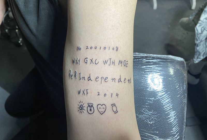 当前位置: 首页 >江西省景德镇市纹身店-仙浪刺青纹身图案>定制身份牌纹身图片_手臂几何新传统纹身图案