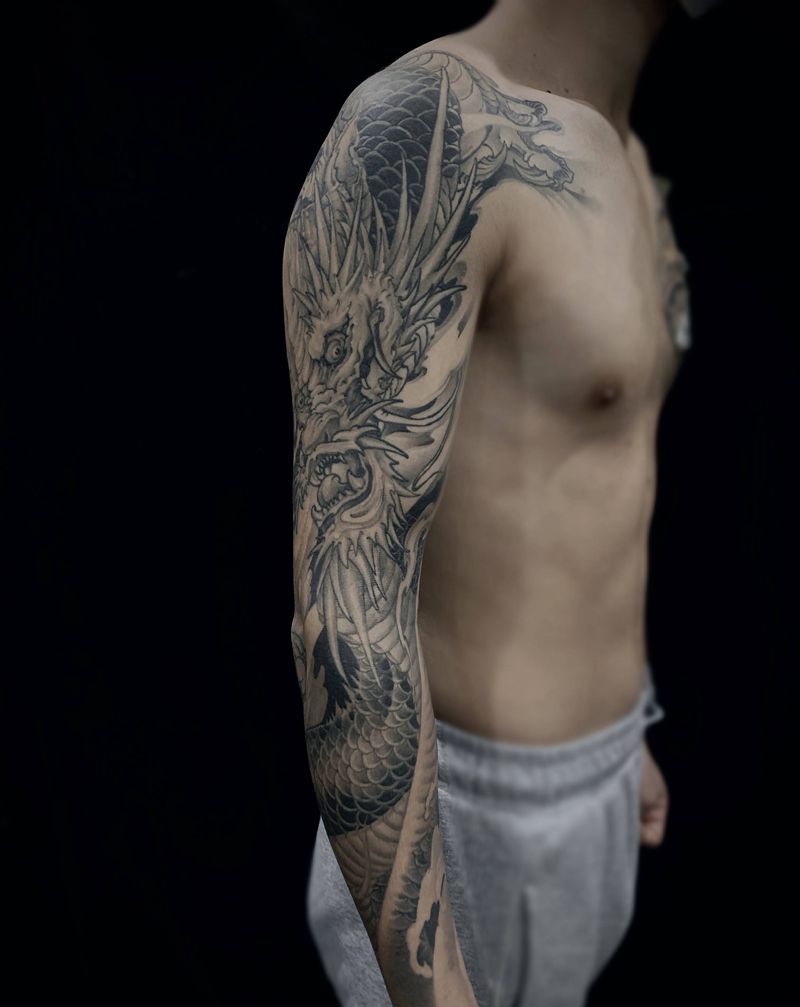 当前位置: 首页 >江西省景德镇市纹身店-仙浪刺青纹身图案>龙纹身图片_手臂新传统纹身图案