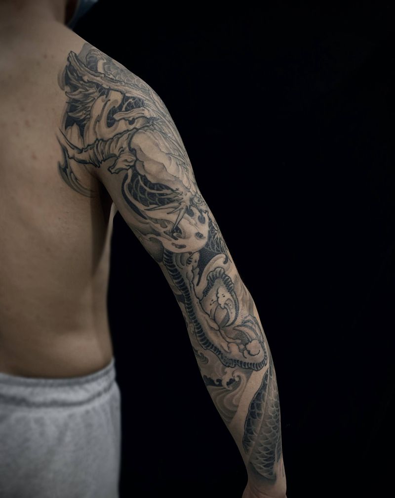 当前位置: 首页 >江西省景德镇市纹身店-仙浪刺青纹身图案>龙纹身图片_手臂新传统纹身图案