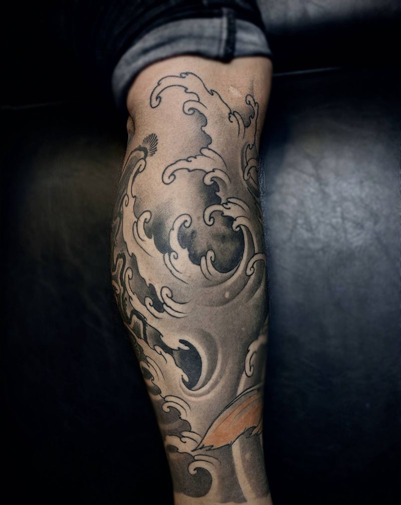 当前位置: 首页 >江西省景德镇市纹身店-仙浪刺青纹身图案>定制浪花包小腿纹身图片_腿部新传统纹身图案