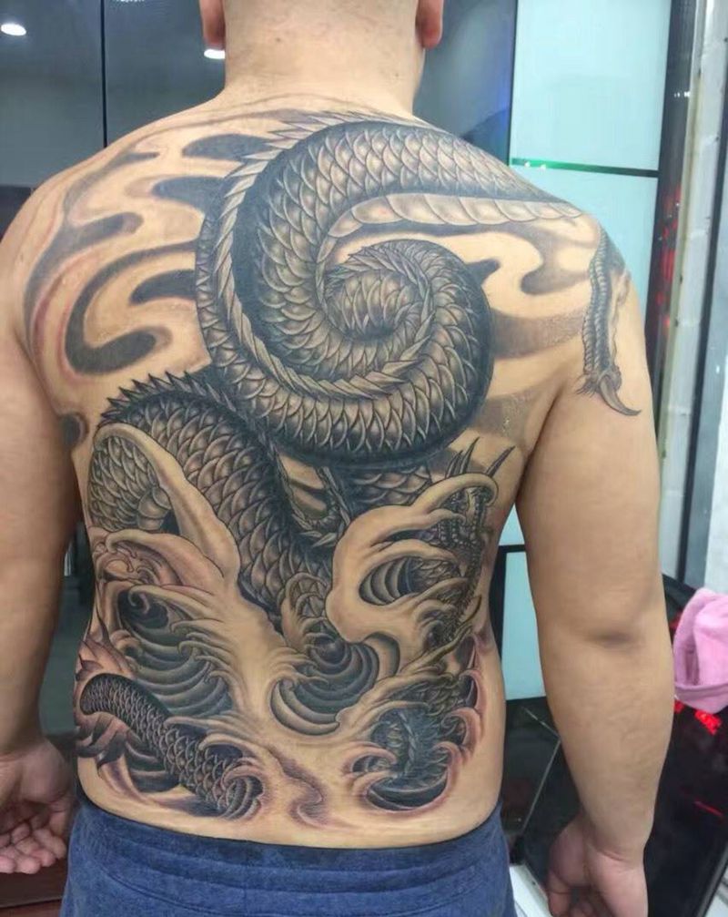 • T云龙九郎纹身图片_背部老传统云龙九郎纹身图案