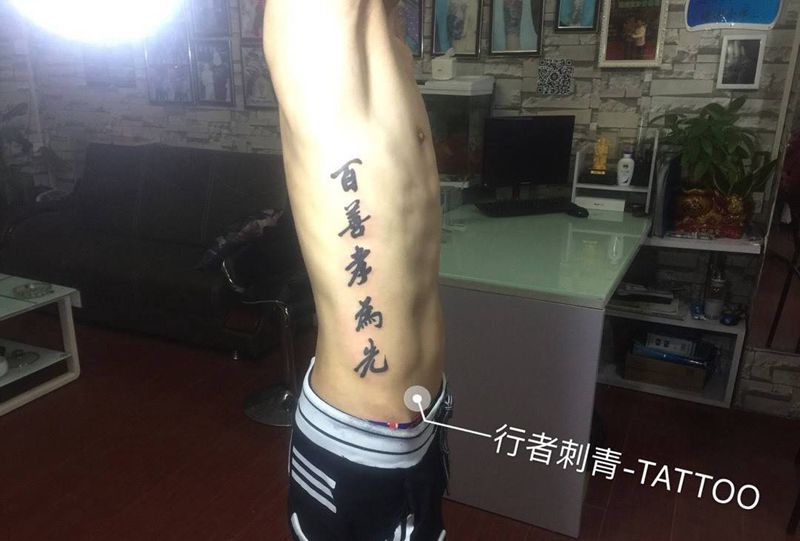 百善孝为先纹身图片_成品腰部写实字符原创纹身图案