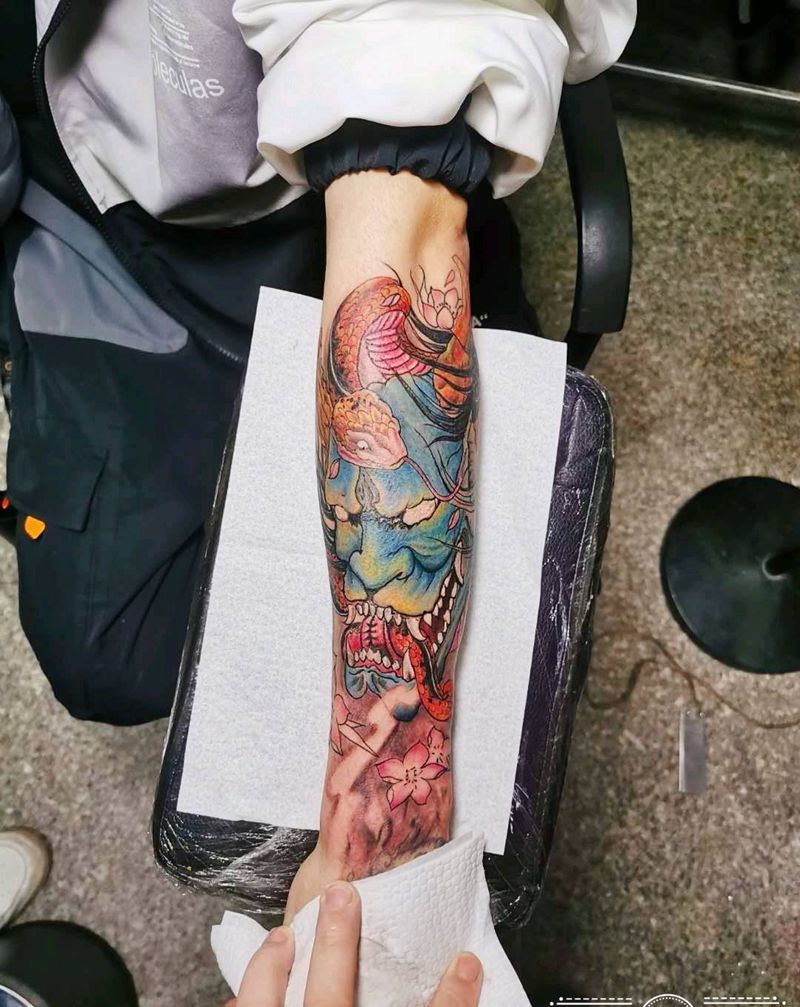 当前位置: 首页 >江西省萍乡市纹身店-行者纹身纹身图案>彩色般若纹身图片_手臂新传统纹身图案