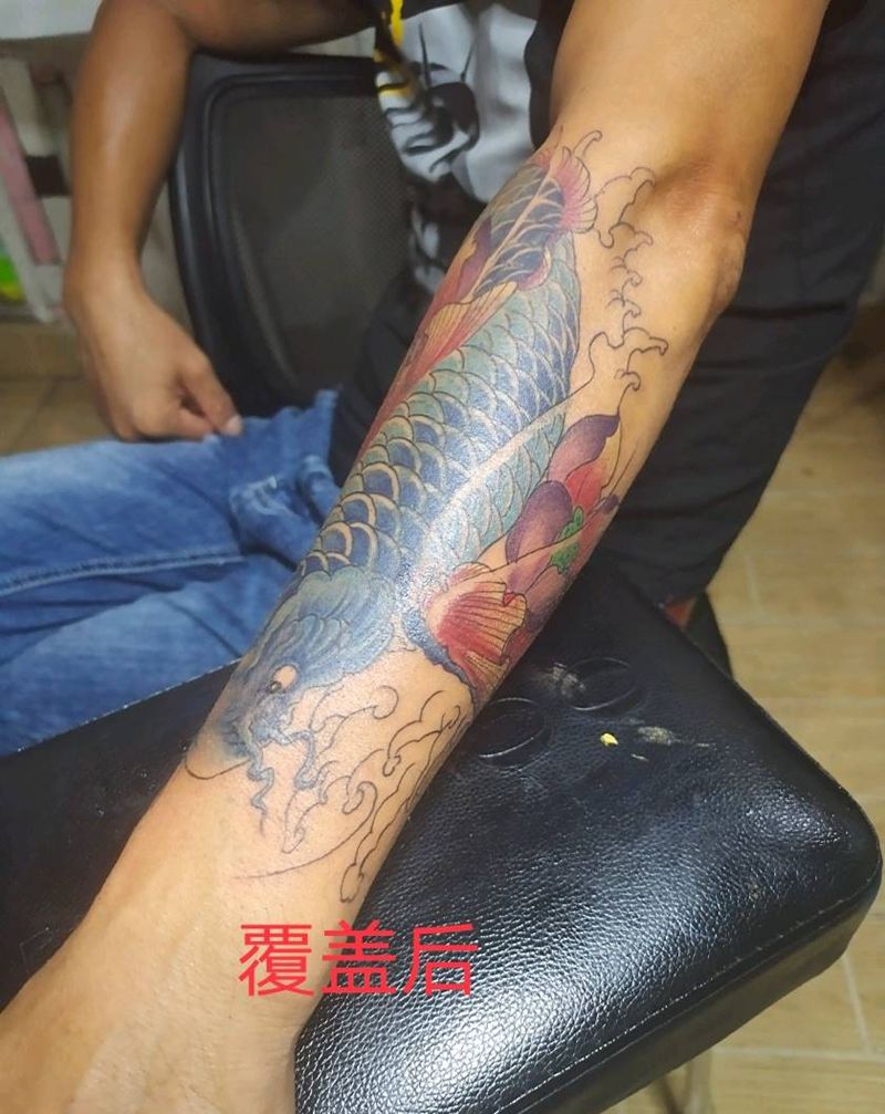 当前位置: 首页 >江西省鹰潭市纹身店-山丘刺青纹身图案>覆盖!鲤鱼纹身图片_手臂纹身图案