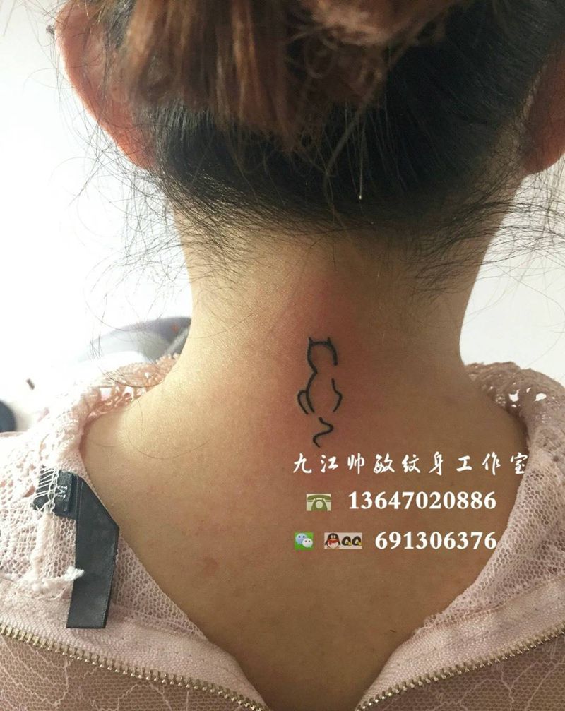 当前位置: 首页 >江西省九江市纹身店-帅敏纹身工作室纹身图案>猫纹身图片_颈部清新手稿肖像动物几何图腾情侣纹身图案