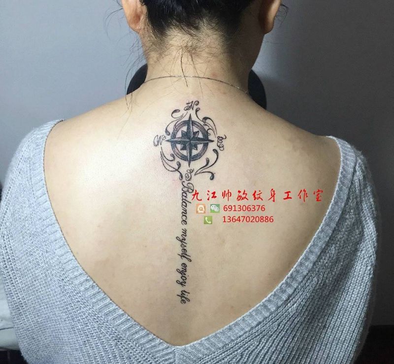 指南针纹身图片_成品背部写实几何静物图腾宗教纹身图案