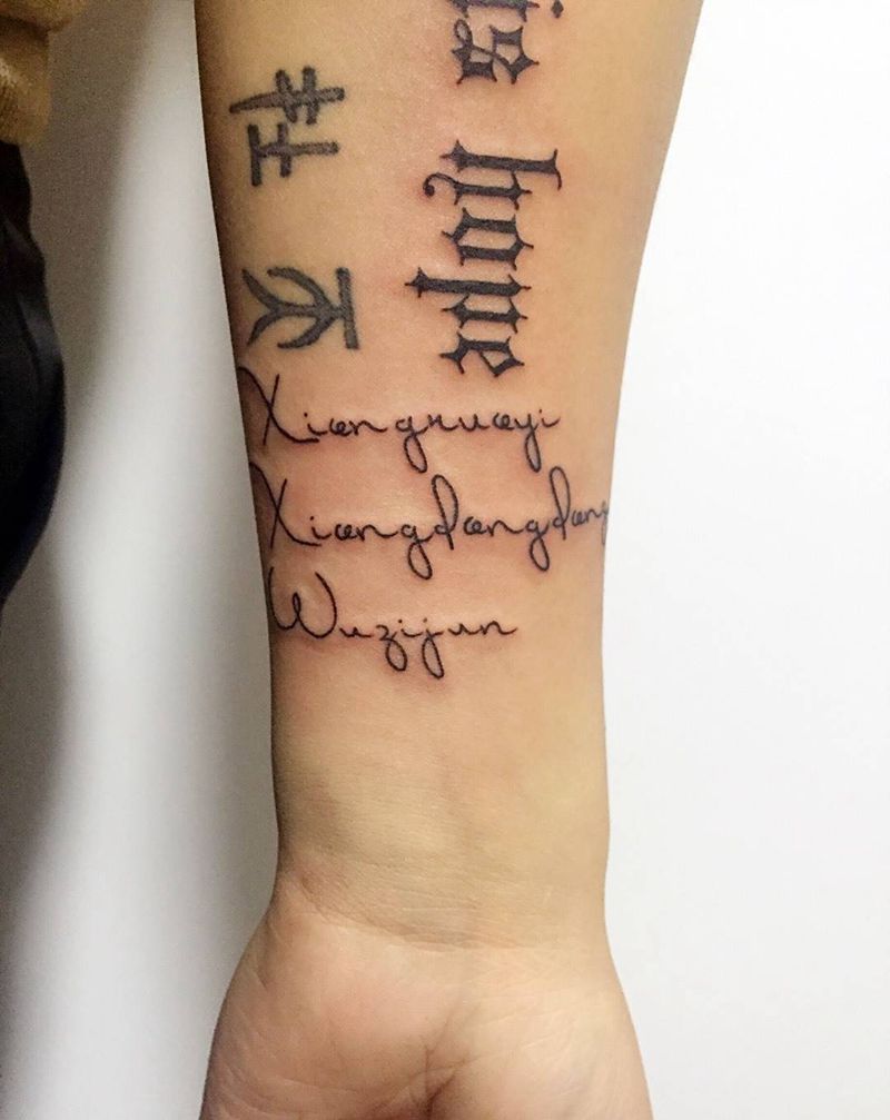 • T家庭图,一家四口生日纪念!纹身图片_手臂纹身图案