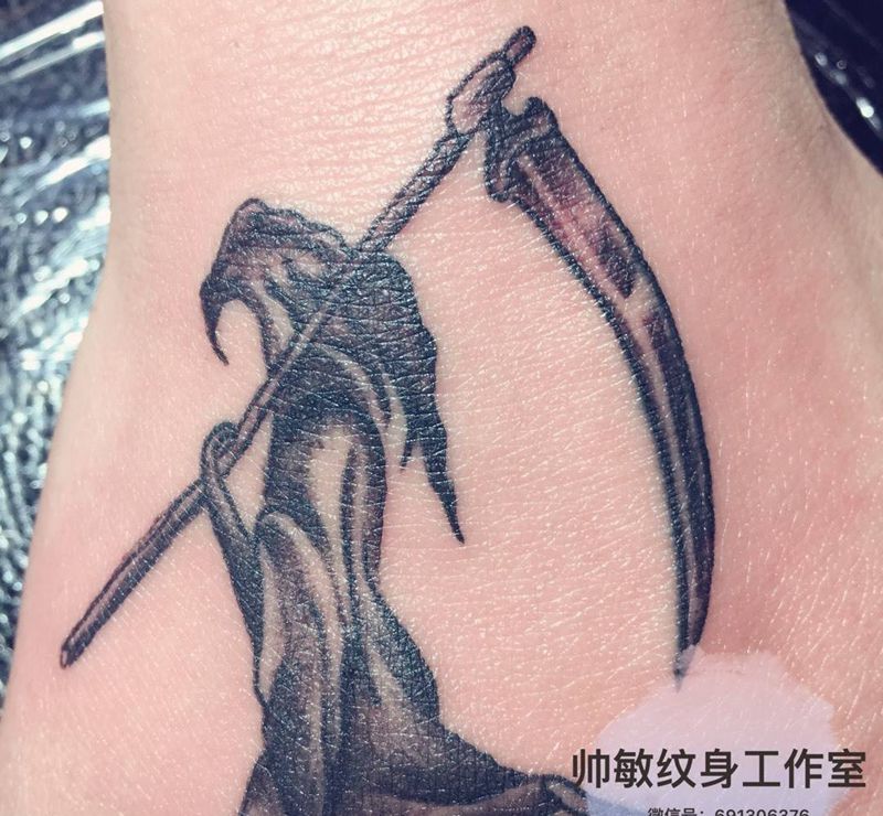 当前位置: 首页 >江西省九江市纹身店-帅敏纹身工作室纹身图案>死神纹身图片_手部肖像鬼神纹身图案