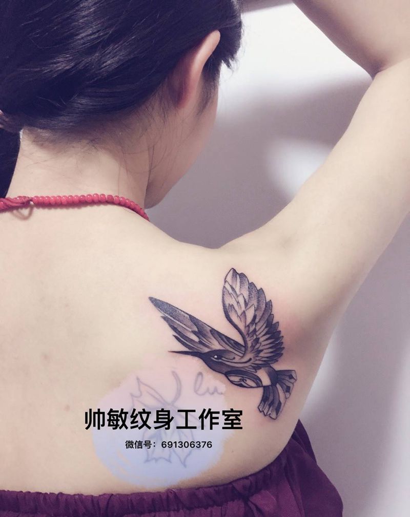 当前位置: 首页 >江西省九江市纹身店-帅敏纹身工作室纹身图案>蜂鸟卍纹身图片_帅敏TATO背部写实动物插画纹身图案