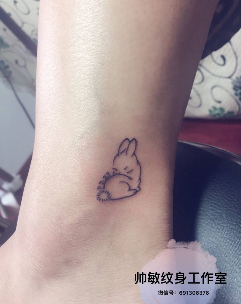 情侣兔纹身图片_帅敏TATTOO情侣清新脚部插画纹身图案