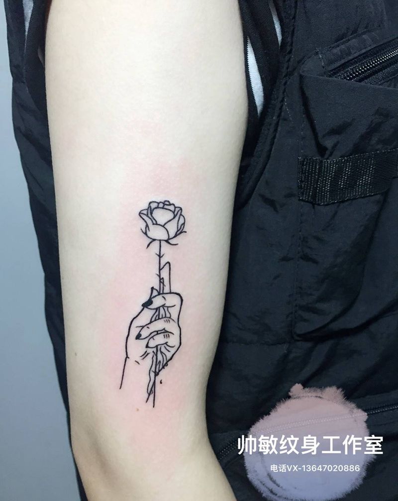 手持玫瑰纹身图片_帅敏TATTOO静物清新手臂手稿纹身图案