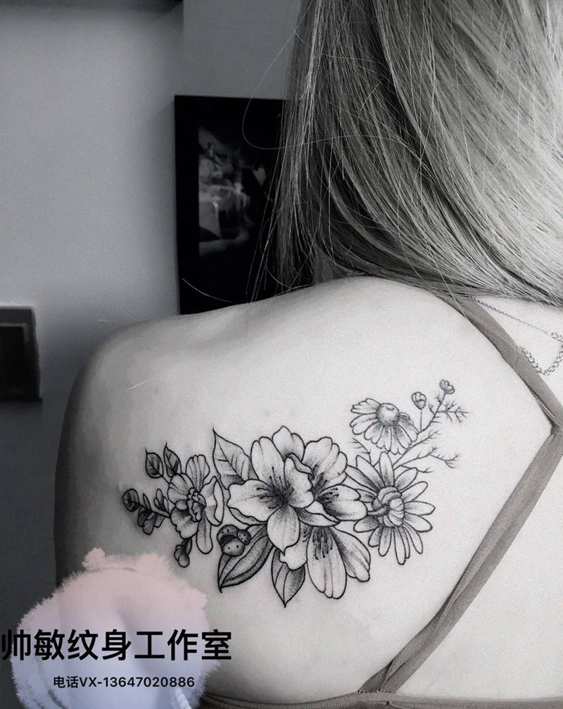 花纹身图片_帅敏TATTOO静物清新背部手稿纹身图案