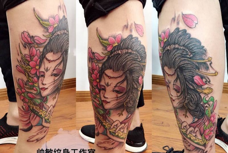 艺妓纹身图片_帅敏TATTOO人物欧美脚部手稿纹身图案