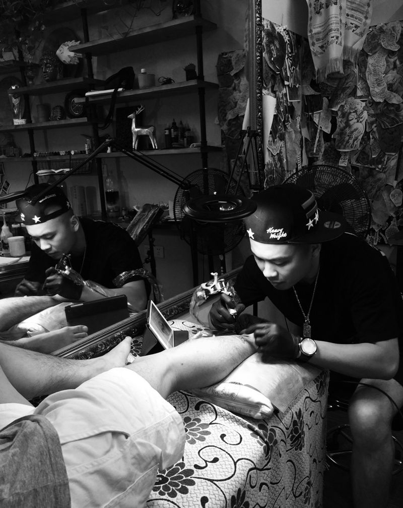 内设环境一角,有两位纹身大师纹身图片_帅敏TATTOO纹身图案
