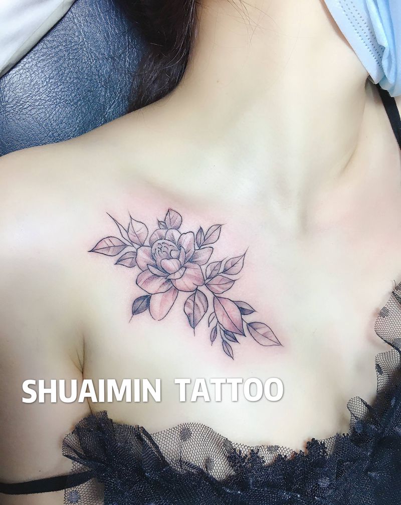 • 女性大花胸纹身_43张霸气漂亮的女性大花胸纹身图案作品