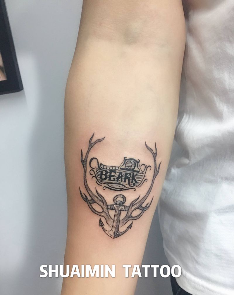当前位置: 首页 >江西省九江市纹身店-帅敏纹身工作室纹身图案>原创店标纹身图片_手臂腿部欧美写实点刺纹身图案