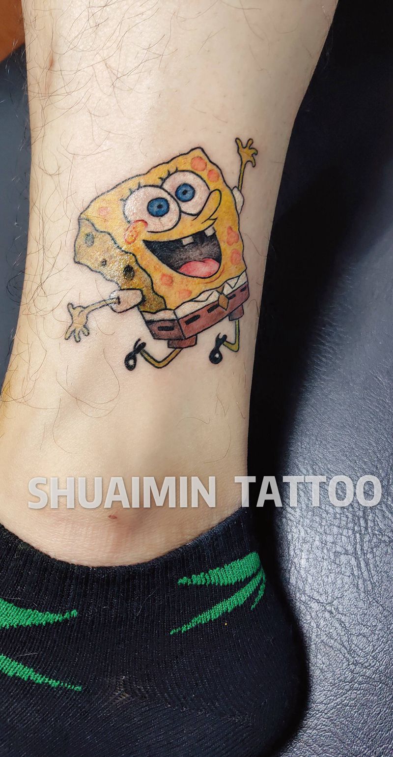 当前位置: 首页 >江西省九江市纹身店-帅敏纹身工作室纹身图案>海绵宝宝纹身图片_腿部手臂欧美写实New School纹身图案