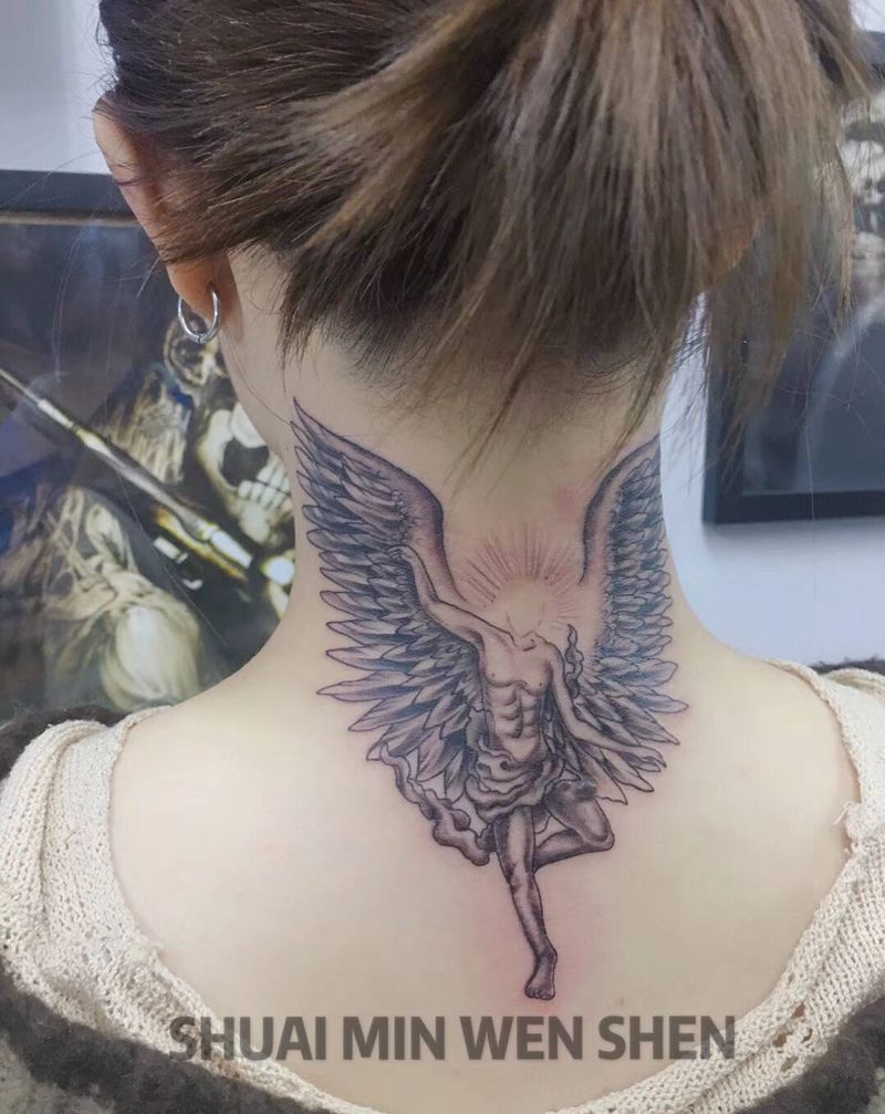 为了遮志纹身图片_颈部纹身图案