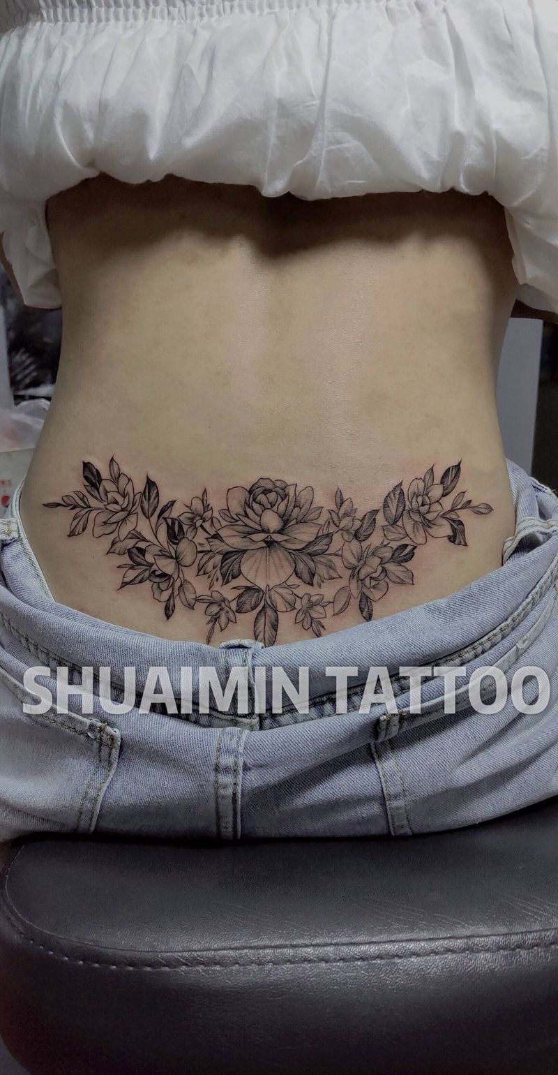 素花纹身图片_胸部腰部点刺欧美写实纹身图案