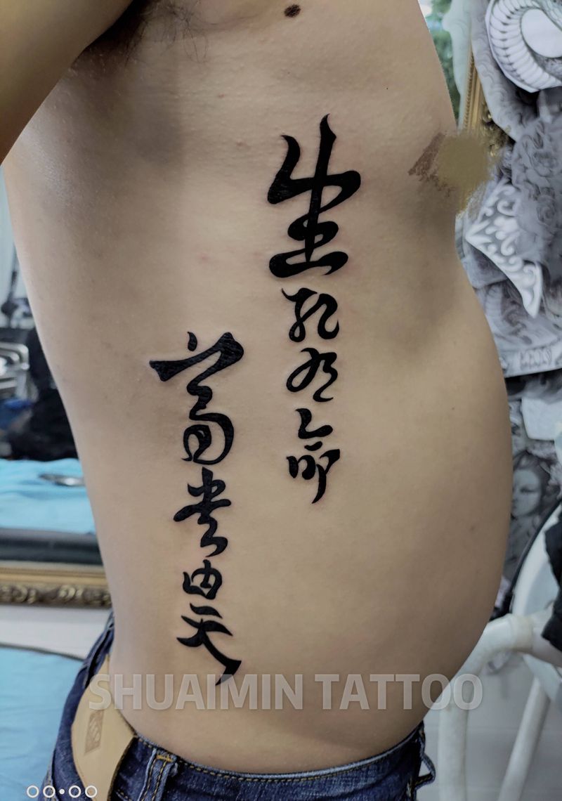 当前位置: 首页 >江西省九江市纹身店-帅敏纹身工作室纹身图案>生死由命纹身图片_腰部手臂花体字老传统纹身图案