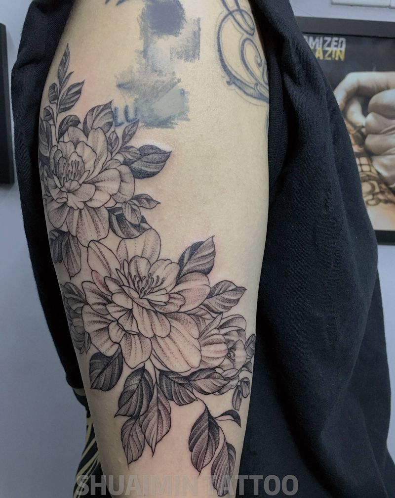 当前位置: 首页 >江西省九江市纹身店-帅敏纹身工作室纹身图案>大臂素花纹身图片_手臂腰部点刺欧美写实纹身图案