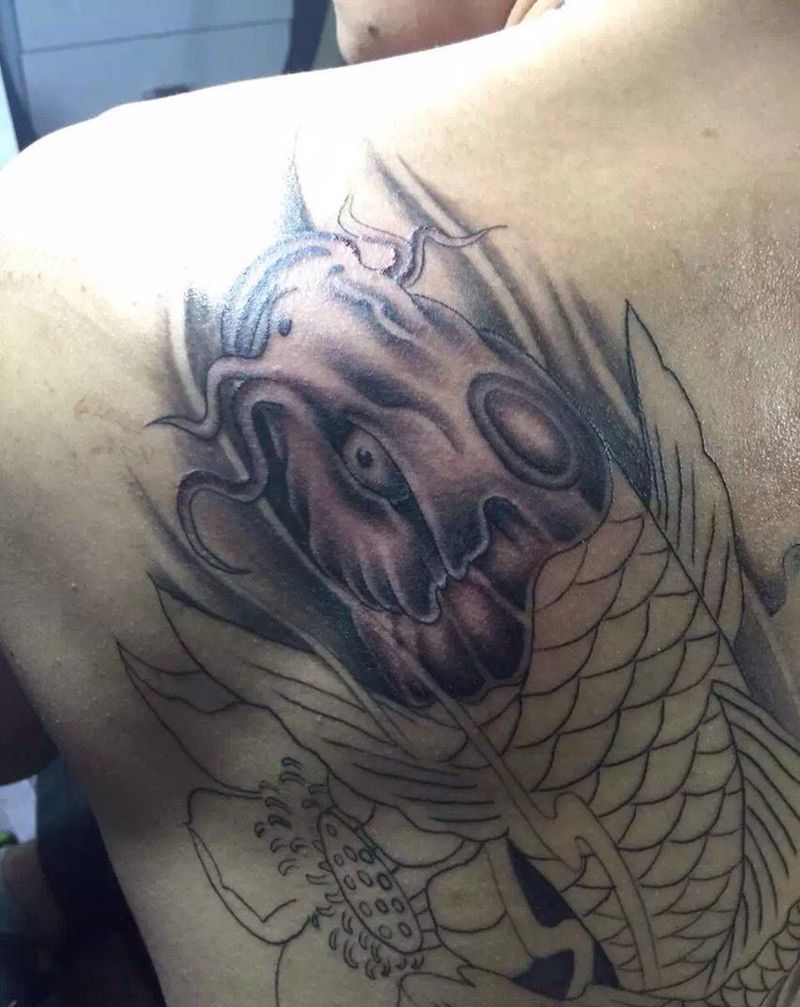 • 黑灰满背纹身图案