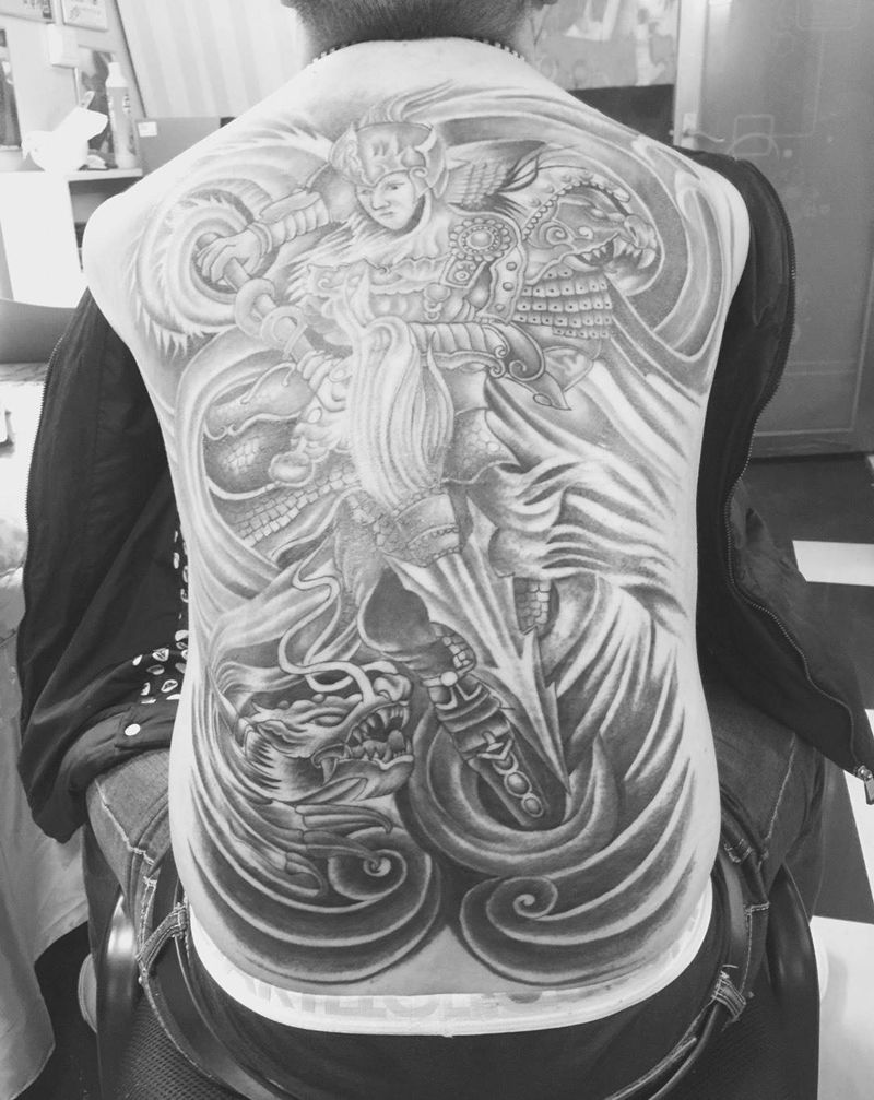 • T云龙九郎纹身图片_背部老传统云龙九郎纹身图案