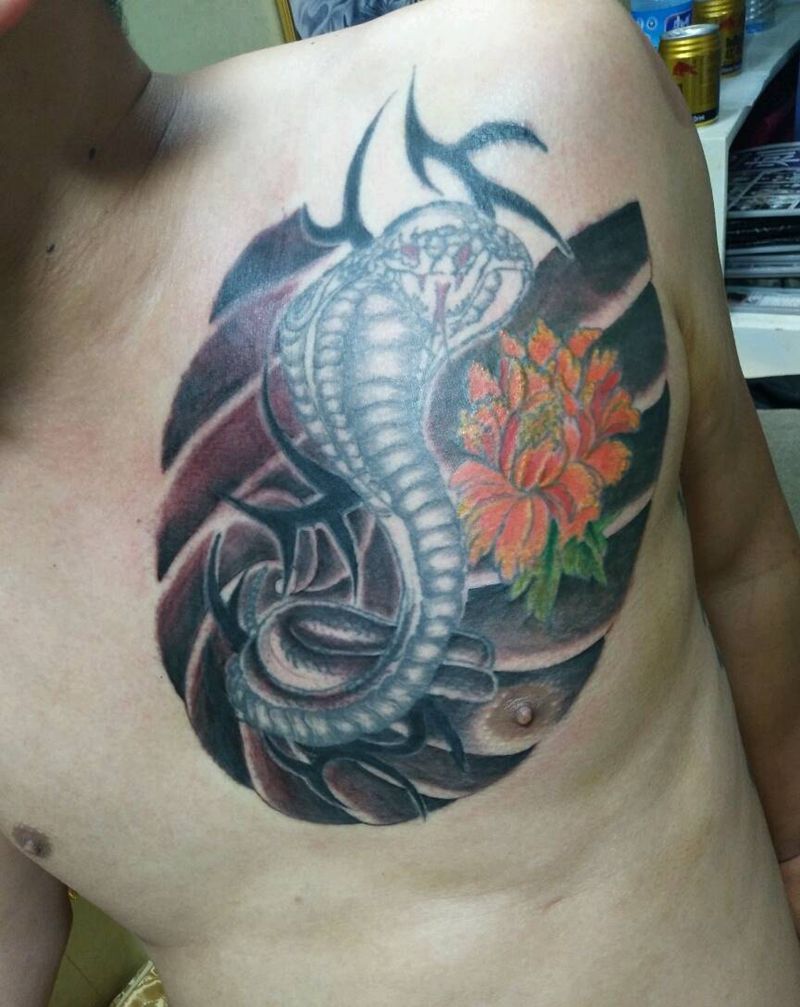 • 女性大花胸纹身_43张霸气漂亮的女性大花胸纹身图案作品