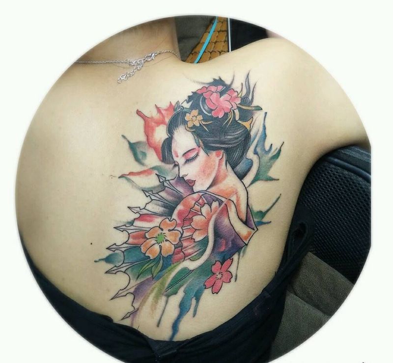 当前位置: 首页 >江西省赣州市纹身店-赣州阿保纹身纹身图案>水墨艺妓纹身图片