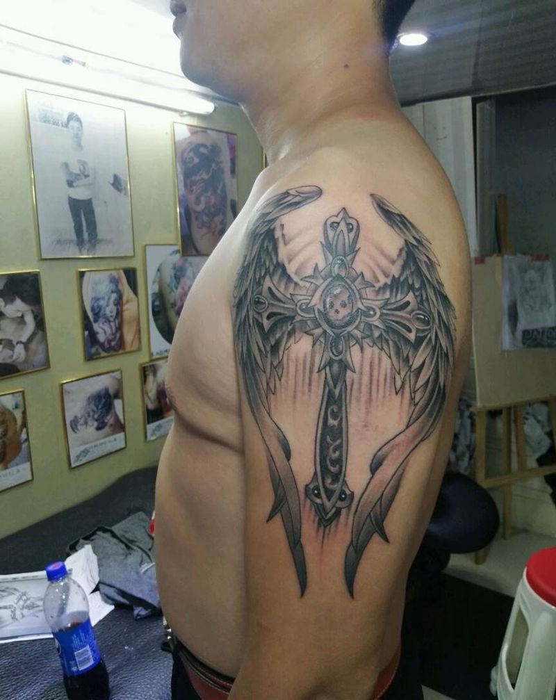 • 纹身吧推荐的披肩图腾半胛纹身图案作品展示