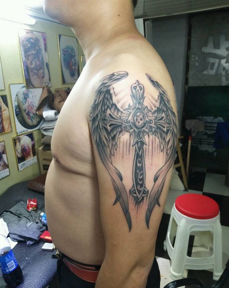 • 纹身吧推荐的披肩图腾半胛纹身图案作品展示